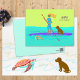 Say "hello" to a friend with illustrated SUP design postcards. Personalise with "from name" on the front and include a mailing address on the back. All text can be changed or deleted. This is my original drawing of a tanned girl and her dog boarding in tropical water as a loggerhead sea turtle swims alongside. The unique design and bright tropical colours will catch the eye of the recipient.