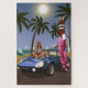 Tropical Surfer Girl with Surf Board, Sports Car, Lighthouse, Waves and Palm Trees