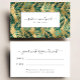 An appointment card design featuring a tropical pattern of teal palm leaf fronds on a gold faux foil background. Personalize it with your name and title in charcoal gray text in a white rectangle. On the reverse, the words "your next appointment" appear in gray handwriting script, along with spaces for the date and time. Edit the italic text at the bottom with additional policies or information for your clients or customers.