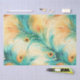 Tropical Teal Peach Orange Peacock Feathers II Tissue Paper