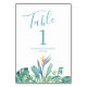 Bring your tropical theme wedding to life with this vibrant wedding table number design, part of the tropical watercolor florals suite by Do Tell A Belle. Featuring a lush spray of greenery, bird of paradise, and palm leaves, this piece beautifully blends floral and garden elegance—perfect for a summer celebration or beach wedding in Florida.