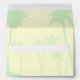 Tropical theme wedding envelope design featuring light green palm trees on an ivory background. This design also comes on many other paper products and postage to suit all your wedding set needs.