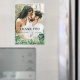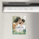 Designed with a stylish yet simple aesthetic, this wedding magnet is both practical and meaningful. The inclusion of a customisable wedding photo ensures that each magnet feels personal and unique, allowing you to showcase a cherished moment from your special day. The tropical leaves frame adds a playful, exotic feel, perfect for those who chose a destination wedding or a seaside celebration. Whether you're thanking guests who travelled to celebrate with you or simply want to evoke the tropical vibe of your wedding, this magnet is a delightful keepsake they can treasure.