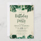 Tropical Foliage Modern Greenery and Leaves Border Personalised Birthday Party Invitations. Perfect for your tropical themed party invites. In a bold colour palette of rich greens, emerald, and gold foil look. This design is perfect for a beach, destination, or summer celebration. With feelings of a tropical paradise, this vivid palm leaf design will compliment your beach or tropical venue. In a dark green, teal, emerald, greenery, and gold colour scheme - Birthday Party Invitations.
