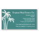 Business card magnets for a Realtor or real estate service designed in a tropical themed palm trees and modern organised layout with sea green background colour that has that beach feel. Created for a Realtor, Broker, real estate Agent, or Agency.