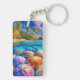 A vibrant tropical seascape split above and below the waterline, this design features a sunlit shoreline with palm trees and glowing clouds above a clear ocean, while beneath the waves lies a mesmerizing collection of vividly patterned sea urchins and starfish in jewel-like colors. The design exudes warmth, tranquility, and a sense of underwater wonder.