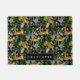 A cute hand drawn illustration of a tropical jungle safari tigers in a jungle featuring exotic floral, leaves, palm and wildflowers. This tropical tiger themed design has a black background which creates a dark moody scene. An ideal design for anyone who loves wild animals, tiger illustrations and tropical themes. Customise this tropical tiger design and make it your own!