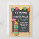 Fun and festive with a retro feel. Celebrate the new couple with a tiki luau party! Great for a couples shower, new home, rehearsal dinner, destination wedding or birthday. Features a big tiki mug, bamboo frame, wood background and a chalkboard middle for the party info. Hand drawn illustration by McBooboos