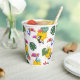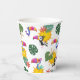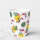 Here's a colourful design filled with toucans, tropical leaves, flowers, and sunshine surrounding a party paper cup.