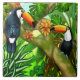 A lovely and cheerful accent for any room, this artistic ceramic tile is sure to please! This colourful, original fine art design of tropical Toco toucans in a South American jungle is by wildlife artist Carolyn McFann of Two Purring Cats Studio