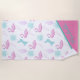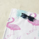 White background with a seamless pattern of pink flamingos and turquoise cactus and your custom monogram in handwritten script font.