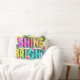 A vibrant and cheerful Pillow design featuring the phrase "Shine Bright" surrounded by tropical elements like palm trees and hibiscus flowers. The bold typography and bright colours create a positive and energetic look, perfect for summer vibes.