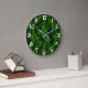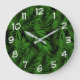 Tropical home decor wall clock design created with a beautiful palm tree leaves pattern and modern clock face numbers. Created as a kitchen wall clock, bathroom clock, or clock that works in tropical decor.