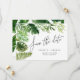 Beautiful modern Tropical watercolor foliage save the date. Beautiful script text. Part of a summer wedding celebration collection.