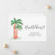 This tropical moving announcement card features watercolor palm trees decorated with colourful string lights and stylish script typography.