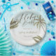 Beautiful beach-theme baby shower paper plates. The design features our hand-painted watercolor palm trees blue sky and shady beach gradient background. Our boho tropical Aloha baby shower paper plates is perfect for a beach-themed baby shower party. Design & artwork hand-painted by Moodthoogy Papery.