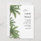 Elegant tropical wedding invitation background with hand-painted watercolor palm trees on a white backdrop. Perfect for beach or destination wedding cards.