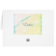 Pretty soft pink, green, yellow, blue tropical watercolor wash wedding table number cards with grey text. Personalise Table Number and each Guests Name in grey text. Love is written on backside. Leave message inside and personalise Bride and Groom's Name and Date of Wedding, or delete. FOR EASE: Type in Guest Name(s) name and Table Number, and add to shopping cart individually. If needed for names, increase/decrease Font Size within safe area in preview. A filter was used for the background, to change to another colour click Customise. Original Artwork Design by TamiraZDesigns.