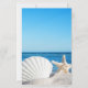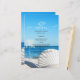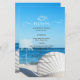 White palm and seashell on a beach. Beautifully menu card that can be customized with your name. Select the "customize" button to change the font style, color, and size.