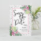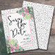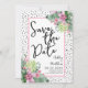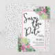 tropical wedding save the dateflowers orchid exotic florallush leaves greenery foliagemodern contemporary chic trendyelegant stylish romantic funhandwritten calligraphy scriptisland destination tropics seacoastal beach hawaii floridadalmatian messy dots zmodernblack and white pink green