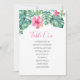 Designed to coordinate with Do Tell A Belle's tropical watercolor stationery suite, this fresh botanical seating chart features a spray of lush monstera palm leaves and in shades of blue, turquoise and green with vibrant pink hibiscus flowers over your list of names. The back side features a complimentary pink colour. Perfect for garden wedding receptions, rehearsal dinners and coastal bridal showers. To see more tropical boho wedding ideas visit www.zazzle.com/dotellabelle