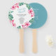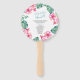 This tropical themed wedding program fan is designed using my original hand painted watercolor hibiscus flower and monstera palm leaves in shades of pink, orange, turquoise, blue and green on a crisp white background in a unique circle format. The bride and grooms names and island wedding program timeline are set in hand lettered script and sans serif typography in a turquoise blue. This double sided botanical floral and greenery design is a beach wedding style choice for Caribbean, luau, Hawaiian, Summer, destination and Florida weddings. Designed by Victoria of Do Tell a Belle. To see more from this pink hibiscus flower wedding theme visit https://www.zazzle.com/collections/pink_hibiscus_flower-119064582807479077