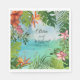 Tropical Wedding Watercolor Hibiscus Palm Green Napkin