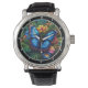 Bring the serene beauty of nature into your home with this exquisite decorative wall clock, featuring a vibrant illustration of a blue butterfly amidst lush tropical flora. Its artistic design showcases intricate plants and leaves, creating a truly colourful and botanical display. This unique clock is a stunning home accessory that infuses your interior design with an elegant and natural charm. Perfect for the living room or bedroom decor, this vivid and detailed timepiece is a testament to fine craftsmanship and a beautiful focal point, celebrating wildlife and nature-inspired beauty in every glance.