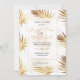Modern and simple exotic yellow gold watercolor painterly palm leaves botanical design, made of yellow, brown, cream, shining gold glitter sparkles areca bamboo foliage, golden cane palm leaf pattern, faint faded jungle leaves underlay, gold and white greenery artsy design, on a simple white background. A minimal botanic leaves plant, summer Hawaiian palm tree illustration art print.