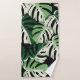 Tropical white green monstera leaf illustration. E Bath Towel