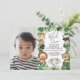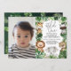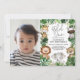Celebrate your little boy's 1st birthday with this whimsical safari-themed party invitation. The design features a group of adorable jungle animals and lush tropical watercolor greenery