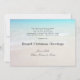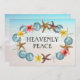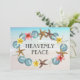 Beach themed Christmas card with scripture. Religious flat cards with custom text for greeting, verse and signature. Sample is, "For to us a child is born, to us a son is given...And he will be called Wonderful Counsellor, Mighty God, Everlasting Father, Prince of Peace.” Wreath design on the front contains sea stars, tropical plumeria / frangipani flowers and aqua blue tree ornaments.