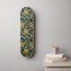 This cool tropical banana skate deck features hand drawn illustration of yellow banana bunches and tropical green banana leaves against an almost black background with subtle raindrop detailing in dark grey.