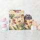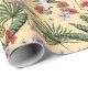 This elegant tropical flaming wrapping paper features a floral pattern of hand-drawn pink flamingos, hibiscus and jasmine flowers, pineapples, banana leaves and tropical drinks, all against an elegant yellow background.