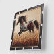 Bring the beauty of nature into your home with this stunning wall clock featuring a Paint horse trotting through a sunlit field of tall grass. The clock is elegantly framed by a ½-inch flat black wooden border, showcasing deep carvings and rugged burn marks in red, grey, and black that add a striking contrast to the lighter wood tones. Crafted to mimic the look of real wood, this piece offers rustic charm without the weight or maintenance of actual materials.