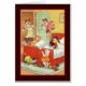Cute vintage artwork showing several kittens in clothes jumping on a bed and tossing pillows.