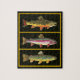 Design features three beautiful trout - the Brook Trout, salvelinus fontinalis; the Rainbow Trout, oncorhynchus; and, the Brown Trout, salmo trutta. The art is taken from three original watercolor paintings by Doug Shultz. Makes a unique gift for anyone who loves fishing or ichthyology. This same design is available on lots of other items at the Trout Whiskers Store. Puzzles are available with other kinds of fish, too.