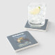 The coasters are gorgeous, a quality feel and heavy weight. They look like a precious archeological find. A rustic stone juxtaposed with a modern floral black and white print. I like the way the print goes slightly imperfect on the cut stone edges giving them a kind-of natural beauty.