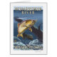 Trout Fishing Cross-Section - Wenatchee River, WA - Vintage Travel Poster was created in 2007. This image depicts scenes from Wenatchee River, WA.