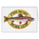 FISH MORE - WORK LESS - Rainbow Trout. This humourous design is also available with other fish: Brook Trout, Brown Trout, Char, Bluegill and Bass.