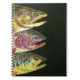 This design features 3 trout: the Brook Trout, salvelinus fontinalis; the Rainbow Trout, oncorhynchus mykiss; and, the Brown Trout, salmo trutta. Great for recording the day's fishing info. A unique journal that any fly fisherman will love - ichthyologists, too. Art is from three watercolor paintings by Mr. Trout Whiskers. Tight lines!