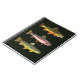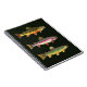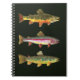 This design features 3 trout: the Brook Trout, salvelinus fontinalis; the Rainbow Trout, oncorhynchus mykiss; and, the Brown Trout, salmo trutta. Great for recording the day's fishing info. A unique journal that any fly fisherman will love - ichthyologists, too. Art is from three watercolor paintings by Mr. Trout Whiskers. Tight lines!