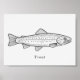 A poster with an illustration of a trout in line art and text message below : perfect wall art for office, school or home decoration. It will be also a perfect gift for a fisherman, a fishing guide, a lover of fish, etc.