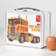 This is a standard metal lunchbox that appears to work just fine. We designed this box ourselves with an uploaded photo and custom text on the front and back. It looks absolutely beautiful except the front of the lunchbox is not centered like it shows in the photo. The print borders don't align with the inset flat part of the box where the preview photo online showed it perfectly centered in there. The back looks nice and centered though.