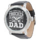 This meaningful wall clock celebrates the esteemed dual role of a truck driver and a father. Set against a black background with a clean white rim, it prominently features a white semi-truck illustration and the text: "SOME PEOPLE CALL ME TRUCKER THE MOST IMPORTANT CALL ME DAD". It's a perfect gift to honour a dedicated trucker dad. The design tool can also be used to add custom text if you want your name or company on this clock. You can customise the colour of the frame to any colour you desire by going into the design tool.