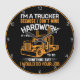 This bold clock is for the hardworking truck driver who isn't afraid of a challenge! It features an orange semi-truck and the assertive statement: "I'M A TRUCKER BECAUSE I DON'T MIND HARDWORK IF I WANTED TO DO SOMETHING EASY I WOULD DO YOUR JOB." An ideal gift for birthdays, Father's Day, or any occasion for the dedicated road warrior.