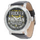 This witty wall clock features a humourous and relatable statement from a truck driver. Against a black background with a yellow rim, it displays the bold text: "I AM A TRUCKER NOT A MAGICIAN BUT I CAN UNDERSTAND WHY YOU MIGHT BE CONFUSED". This clever design, accented with yellow stars, is a perfect gift for any trucker who deals with misperceptions about their job. The design tool can also be used to add custom text if you want your name or company on this clock. You can customise the colour of the frame to any colour you desire by going into the design tool.