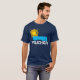 Image of the sun. Blue silhouette of a heavy truck against the background of an orange and yellow sun. White text Trucker under the image. Navy blue background. Customisable t-shirt for anyone. You can change images and you can change or delete the template text. Do not forget to choose another style, colour, the gender of the shirt. You can change the blue truck silhouette to the image of your real truck. Have fun and make one.