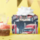 A large red cab with Santa being a cool trucker, driving a big rig decorated for Christmas in a snowy winter night creates a fun holiday wrapping paper for the person who drives a rig.