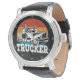 This stylish wall clock captures the essence of a truck driver's journey with a striking sunset motif. Against a black background with a teal rim, it features a semi-truck silhouette in black and white set against horizontal stripes of orange and yellow, evoking a scenic drive. The bold text "TRUCKER" proudly anchors the design. It's a perfect gift for any professional driver who appreciates the beauty of the open road. The design tool can also be used to add custom text if you want your name or company on this clock. You can customise the colour of the frame to any colour you desire by going into the design tool.